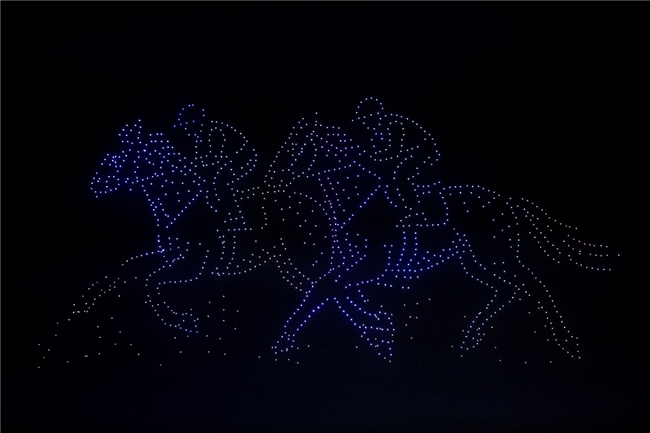 启动仪式后,万众期待的低空光影秀震撼登场。1200架无人机腾空而起,在流溪河上空精准编队,依次变幻出香港赛马会标志和吉祥物、“两地三马场” 的字样、“马年新春”祥瑞字样以及象征从化生态瑰宝的“世界珍稀温泉”等动态画面。光影流转间,一幅融合湾区活力与岭南风韵的空中画卷徐徐展开,引人赞叹。