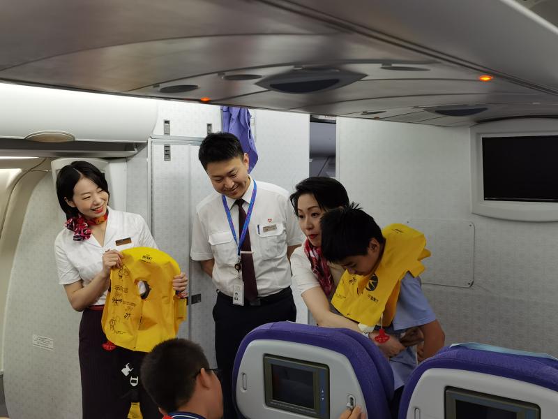 这一过程中,还有学生差点“闯祸”。原来,讲到航空器上的逃生设施时,有同学出于好奇,在客舱内便想将救生衣进行充气。“充气时间地点都非常重要,”客舱部教员李诗怡立刻解释,一旦飞机在水上解体沉没,充气后的救生衣进水后会产生浮力卡在机舱内,使人不得动弹,甚至可能发生溺亡事故。因此,在训练过程中,也要时刻绷紧这根弦。